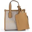Elegantní a praktická dámská kabelka od značky Hispanitas je ideální volbou pro každou příležitost. Kabelka vyniká svým originálním provedením ze síťoviny a strukturované syntetiky, což zaručuje lehkost a stylový vzhled. Kombinace béžové a smetanové barvy dodává kabelce nadčasový vzhled, který snadno sladíte s jakýmkoliv outfitem. Kabelku lze nosit jak v ruce, tak přes rameno díky přidanému crossbody popruhu. Široký, textilní ramenní popruh s délkou 90–145 cm umožňuje nosit kabelku klasicky nebo jako crossbody. Kabelka je shora uzavíratelná na magnet a uvnitř najdete zipovou etuji na pásku provlečeném skrz madlo, což zajišťuje bezpečné uložení vašich věcí. S rozměry 22 cm na šířku, 21,5 cm na výšku a hloubkou dna 9 cm je ideální pro každodenní použití. Kování v matném bronzovém odstínu dodává kabelce sofistikovaný nádech.
