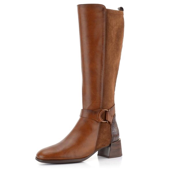 Dámské luxusní kozačky v přírodní hnědé barvě se strečí na lýtku a vnitřní měkkou stélkou.