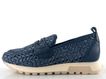 Jedinečné letní mokasíny od španělské značky Hispanitas kombinují styl a komfort v jednom. Svršek z kombinace strukturované kůže a splétaného umělého lýka na podkladu ze síťoviny v tmavší jeans modré barvě dodává obuvi atraktivní vzhled. Prořezávaný kožený pásek na nártu a prodyšné boky přispívají k jedinečnosti designu.