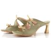 Luxusní dámské pantofle na podpatku od značky Hispanitas jsou ideální volbou pro jarní a letní dny. Tyto pantofle v trendy karé střihu jsou vyrobeny z hladké kůže v světlé šedozelené barvě, která skvěle doplní váš outfit. Dvě ozdobné mašličky na nártu v béžové barvě dodávají obuvi šarm a eleganci.