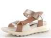 Dámské sandály na platformě od značky Hispanitas představují ideální volbu pro jarní a letní dny. S originálním sportovním střihem a kulatou špičkou zaujmou na první pohled. Svršek z strukturální kůže v kombinaci smetanové, mandlově hnědé a metalické béžové barvy dodává těmto sandálům elegantní vzhled. Délkově nastavitelný kotníkový pásek na suchý zip zajišťuje pohodlné nošení, zatímco měkká stélka s technologií TRIFLOW® poskytuje celodenní komfort díky třem měkkým vrstvám. Robustnější platforma s mírným klínkem a podešev s průhledným latexovým nášlapem přidávají na stabilitě. Tato obuv je skvělou volbou pro každodenní nošení, do města i na lehké procházky.